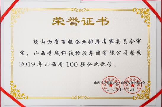 2019年山西制造業(yè)企業(yè)100強(qiáng)第9名