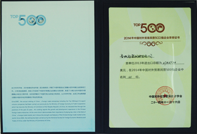 2014年中國(guó)對(duì)外貿(mào)易民營(yíng)500強(qiáng)第165位