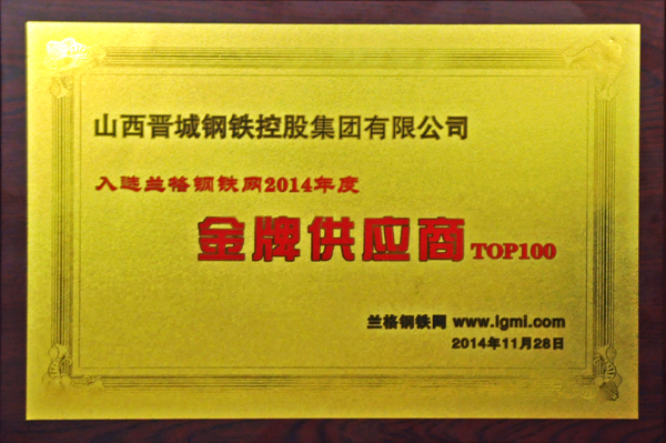 蘭格鋼鐵網(wǎng)2014年金牌供應(yīng)商100強(qiáng)