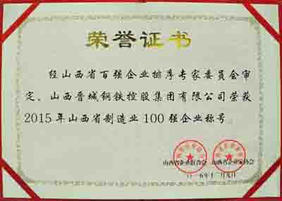 2015年山西省制造業(yè)100強(qiáng)第10名