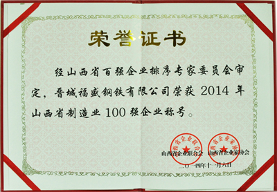2014年山西省制造業(yè)100強(qiáng)第10名