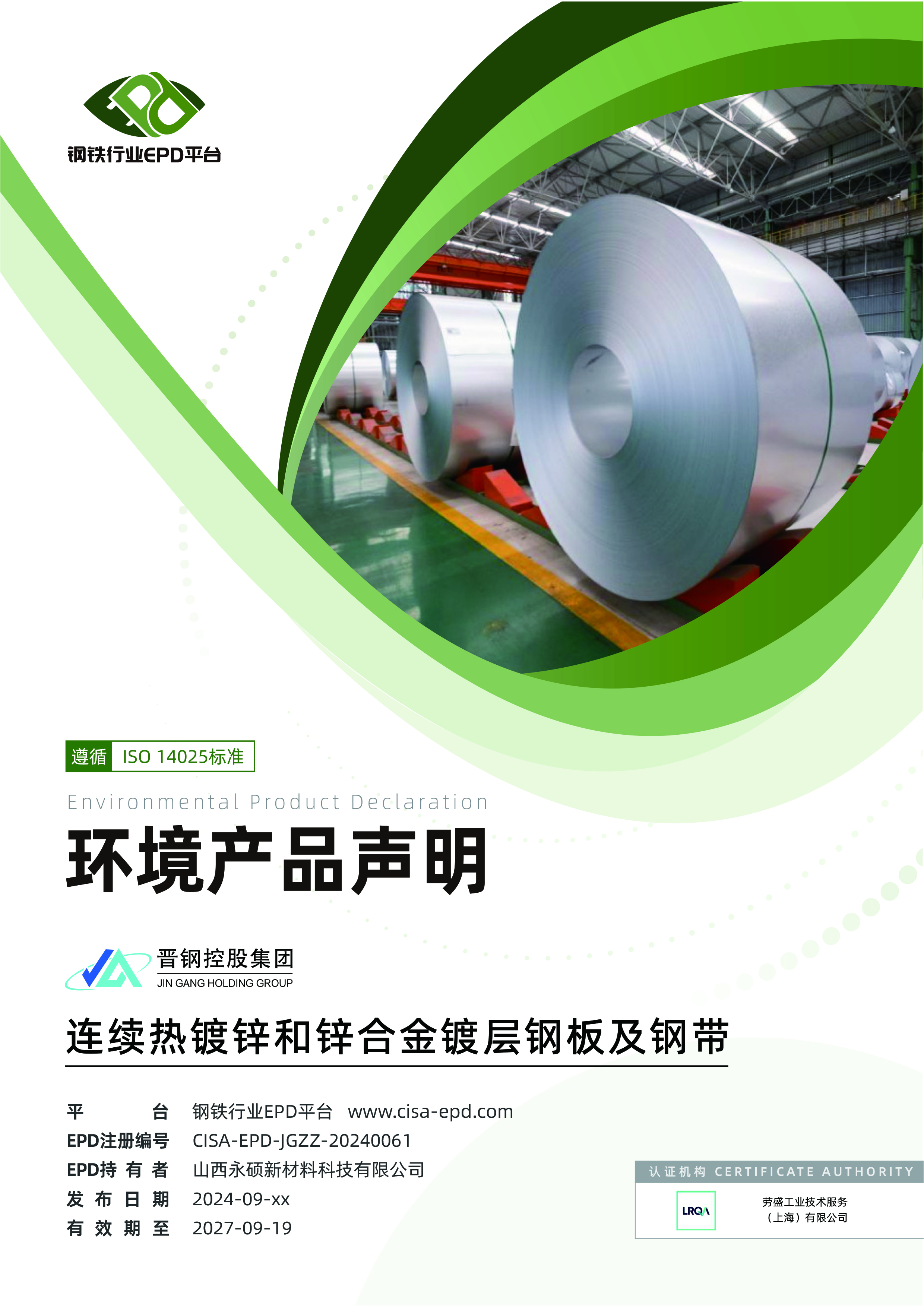 EPD連續(xù)熱鍍鋅和鋅合金鍍層鋼板及鋼帶環(huán)境產(chǎn)品聲明