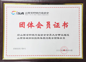 山西省鋼鐵協(xié)會(huì)團(tuán)體會(huì)員證書(shū)