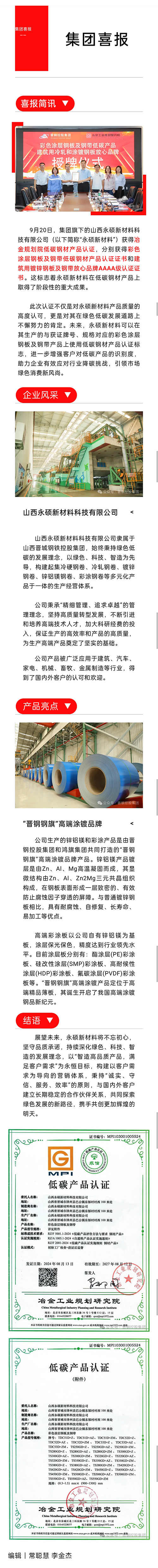 【喜報(bào)】集團(tuán)榮獲低碳鋼材產(chǎn)品認(rèn)證,引領(lǐng)綠色智造新篇章