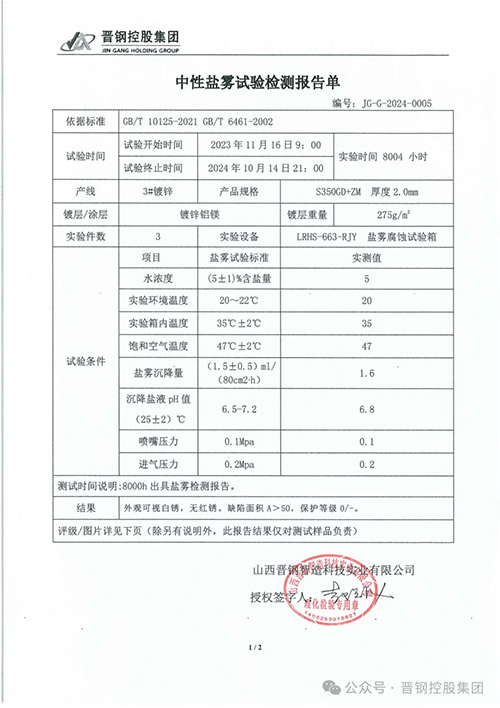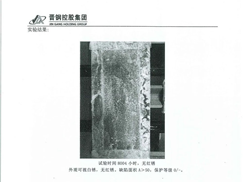 近日,先進(jìn)金屬材料涂鍍國(guó)家工程實(shí)驗(yàn)室晉鋼分實(shí)驗(yàn)室里傳來(lái)喜訊:晉鋼鋅鋁鎂產(chǎn)品在鹽霧測(cè)試條件下歷時(shí)300多個(gè)日夜,歷經(jīng)8000小時(shí)腐蝕性環(huán)境的考驗(yàn),表面測(cè)試合格無(wú)紅銹。這一里程碑式的成果有力彰顯了晉鋼鋅鋁鎂產(chǎn)品在耐腐性能方面的卓越實(shí)力,同時(shí)也充分證明了晉鋼先進(jìn)的科研水平和過(guò)硬的產(chǎn)品質(zhì)量。
