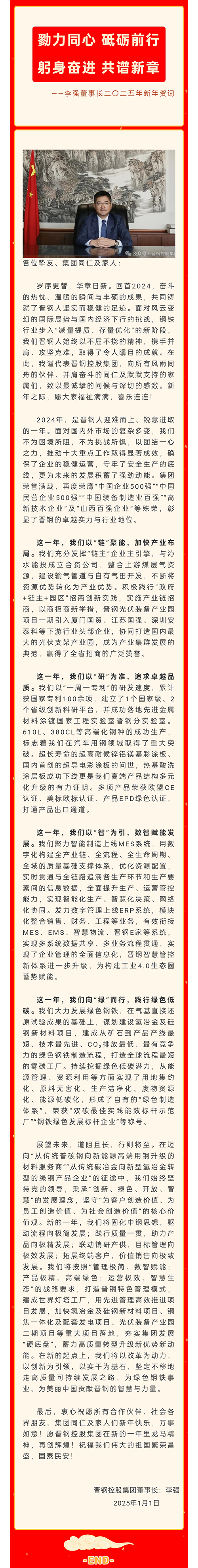 勠力同心 砥礪前行 躬身奮進 共譜新章——李強董事長二〇二五年新年賀詞