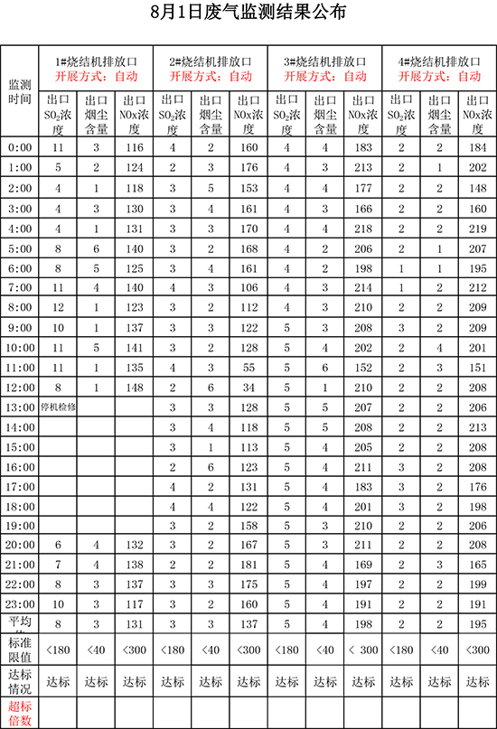 8月1日晉鋼集團廢氣監(jiān)測結(jié)果公布