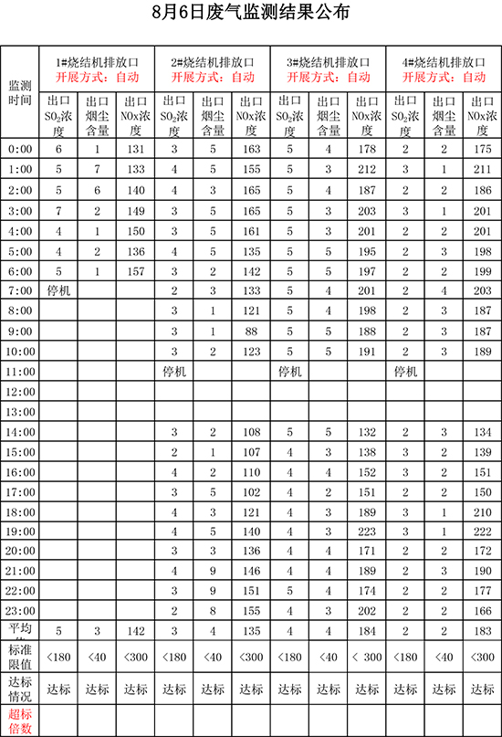 8月6日晉鋼集團(tuán)廢氣監(jiān)測(cè)結(jié)果公布