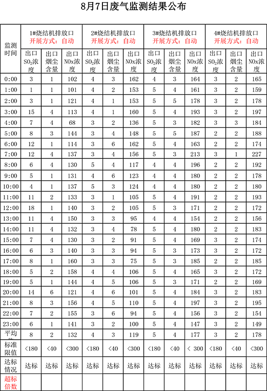 8月7日晉鋼集團(tuán)廢氣監(jiān)測結(jié)果公布