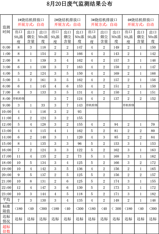 8月20日晉鋼集團廢氣監(jiān)測結(jié)果公布