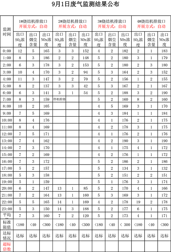 9月1日晉鋼集團(tuán)廢氣監(jiān)測(cè)結(jié)果公布