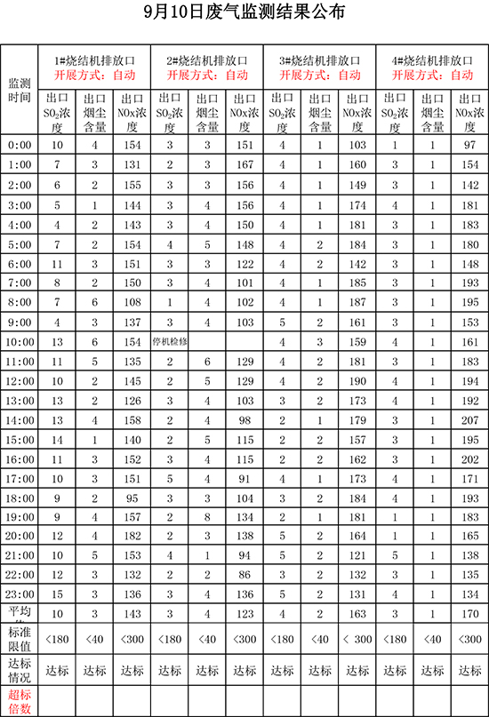 9月10日晉鋼集團(tuán)廢氣監(jiān)測(cè)結(jié)果公布