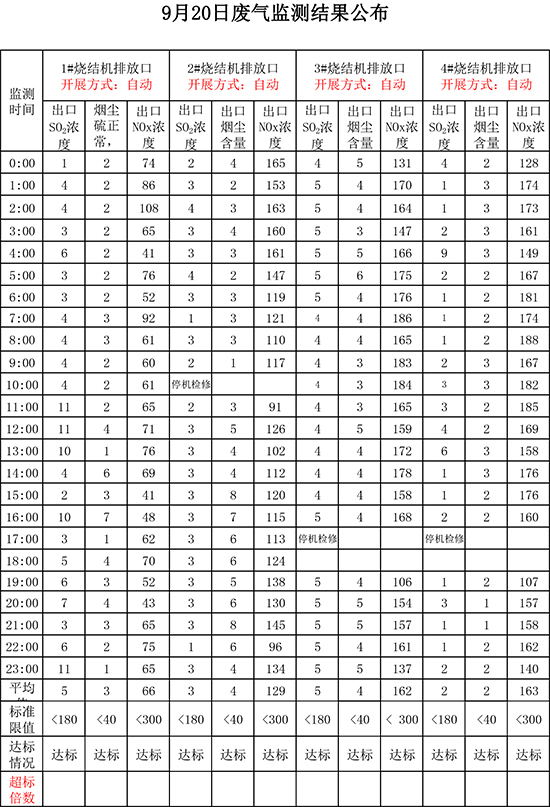 9月20日晉鋼集團廢氣監(jiān)測結果公布