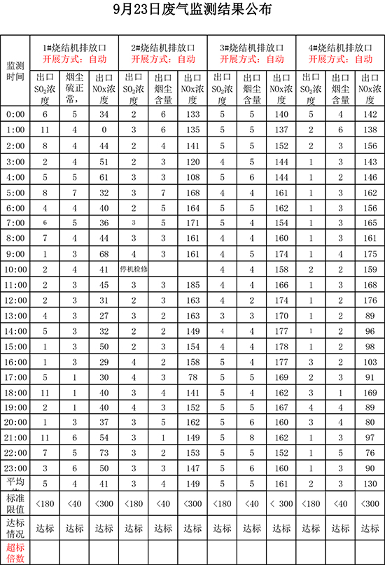 9月23日晉鋼集團廢氣監(jiān)測結(jié)果公布