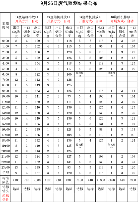 9月26日晉鋼集團(tuán)廢氣監(jiān)測結(jié)果公布