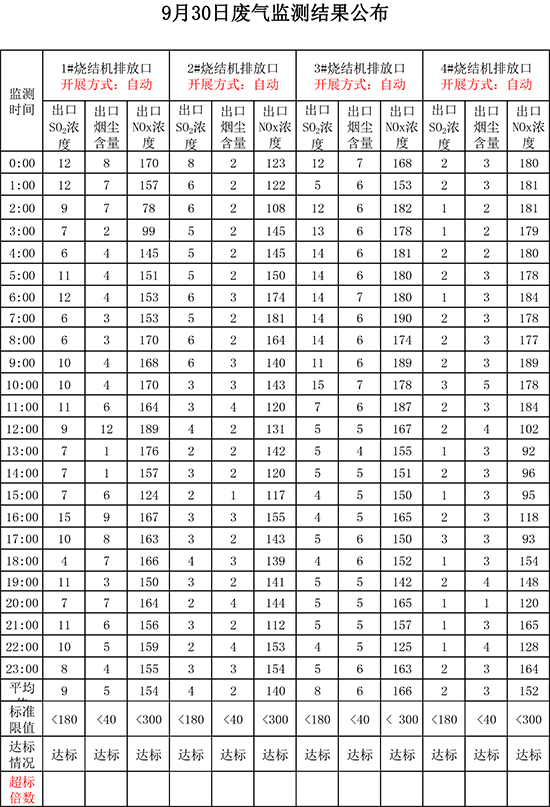 9月30日晉鋼集團(tuán)廢氣監(jiān)測(cè)結(jié)果公布