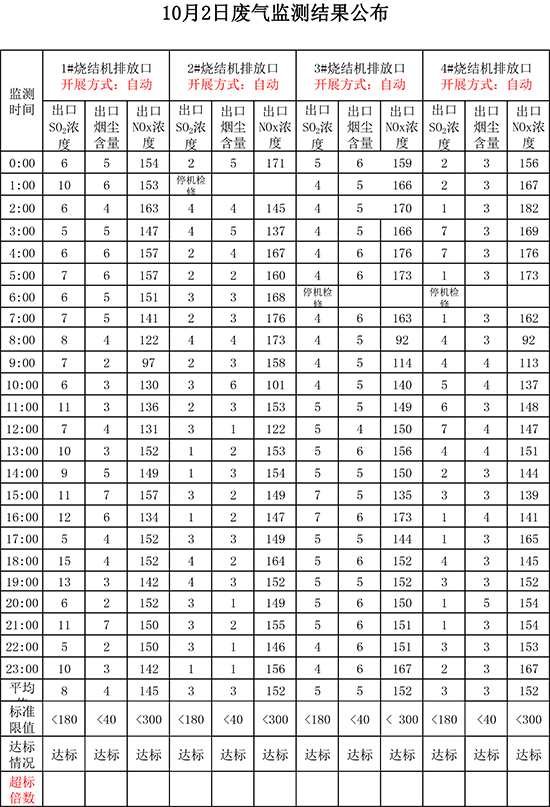 10月2日晉鋼集團廢氣監(jiān)測結果公布