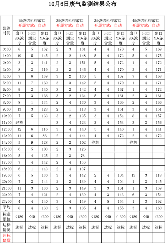 10月6日晉鋼集團(tuán)廢氣監(jiān)測結(jié)果公布