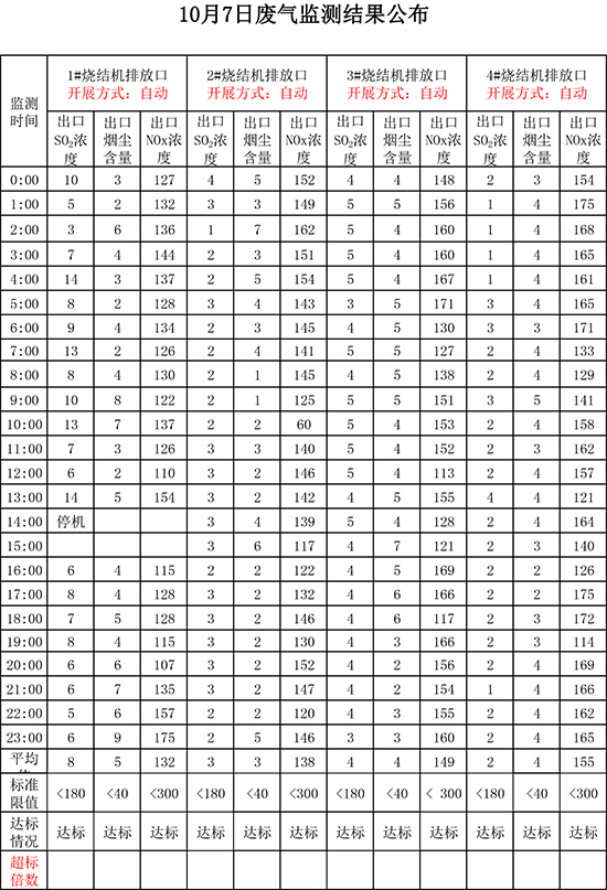 10月7日晉鋼集團(tuán)廢氣監(jiān)測(cè)結(jié)果公布