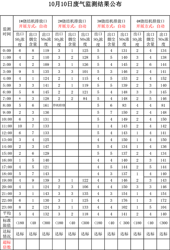 10月10日晉鋼集團(tuán)廢氣監(jiān)測結(jié)果公布