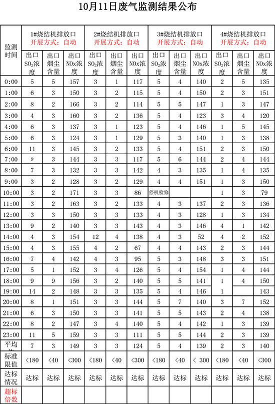 10月11日晉鋼集團(tuán)廢氣監(jiān)測結(jié)果公布
