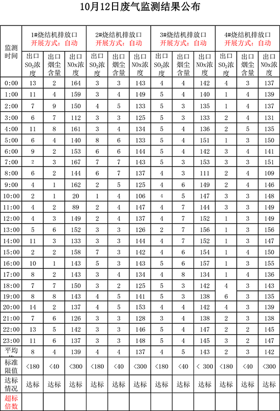10月12日晉鋼集團(tuán)廢氣監(jiān)測(cè)結(jié)果公布