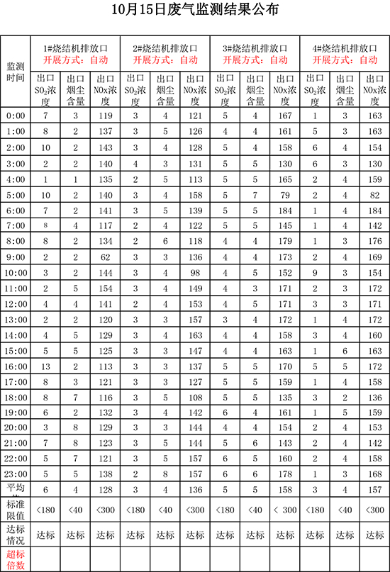 10月15日晉鋼集團(tuán)廢氣監(jiān)測結(jié)果公布