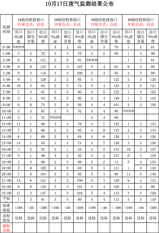 10月17日晉鋼集團(tuán)廢氣監(jiān)測(cè)結(jié)果公布