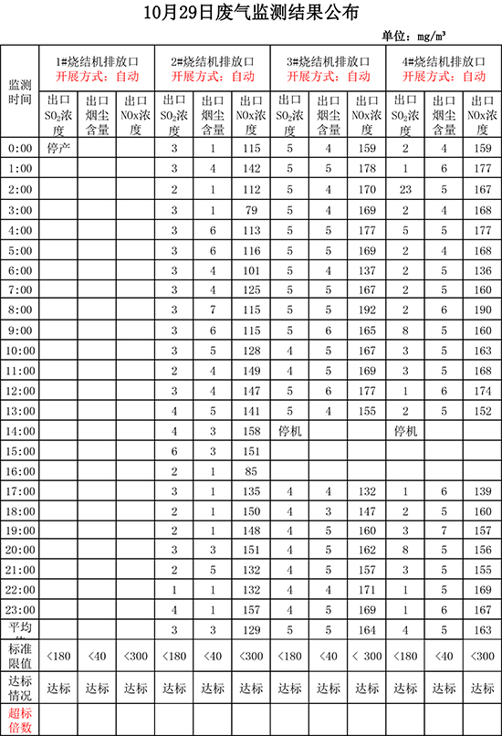 10月29日晉鋼集團(tuán)廢氣監(jiān)測(cè)結(jié)果公布