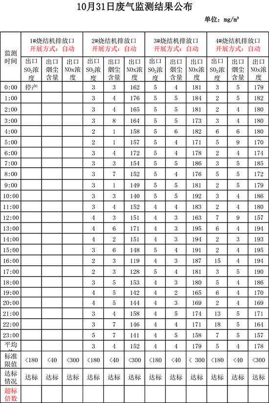 10月31日晉鋼集團(tuán)廢氣監(jiān)測結(jié)果公布