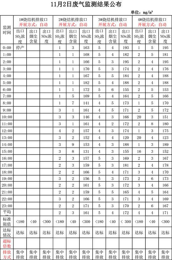 11月2日晉鋼集團廢氣監(jiān)測結(jié)果公布