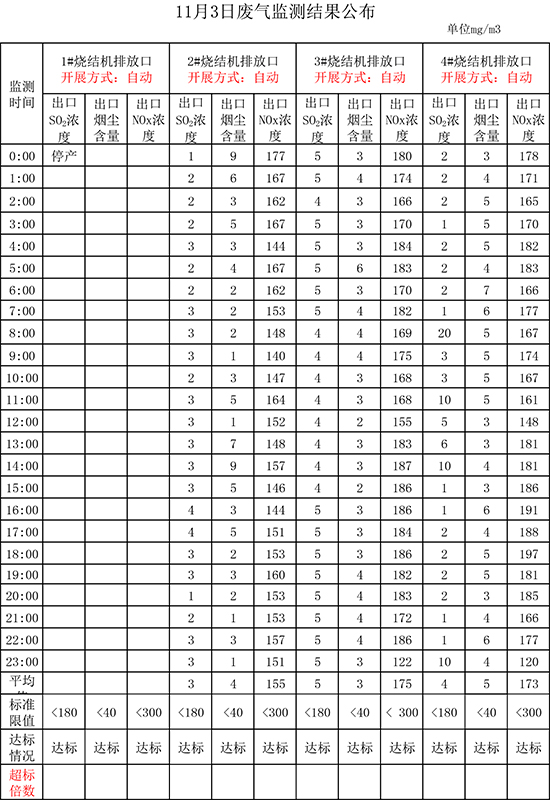 11月3日晉鋼集團廢氣監(jiān)測結(jié)果公布