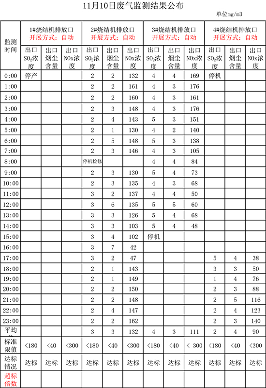11月10日晉鋼集團廢氣監(jiān)測結果公布