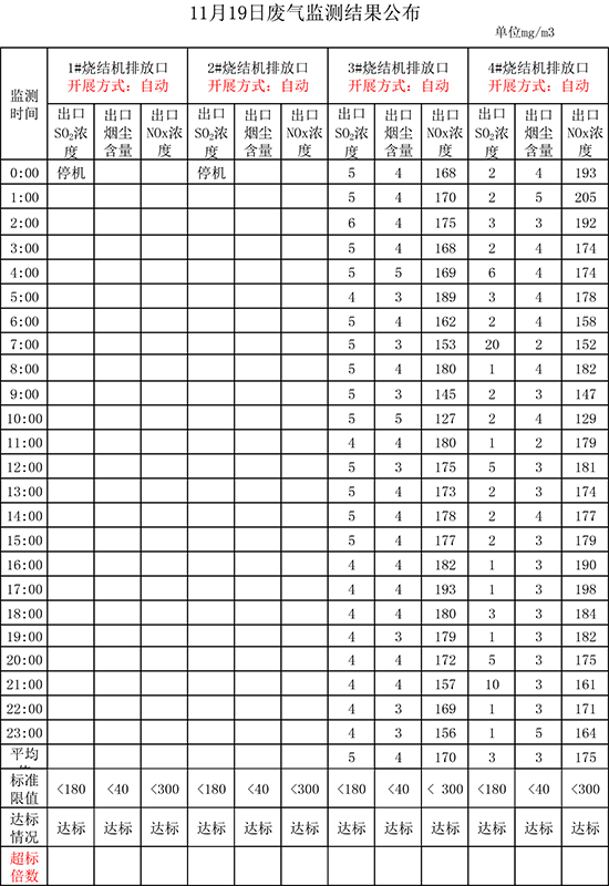 11月19日晉鋼集團廢氣監(jiān)測結果公布