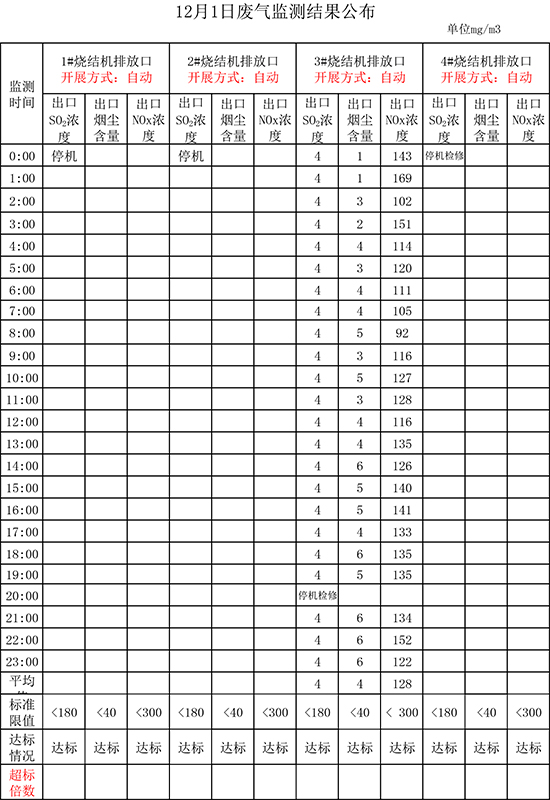 12月1日晉鋼集團廢氣監(jiān)測結果公布