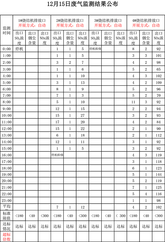 12月15日晉鋼集團廢氣監(jiān)測結果公布