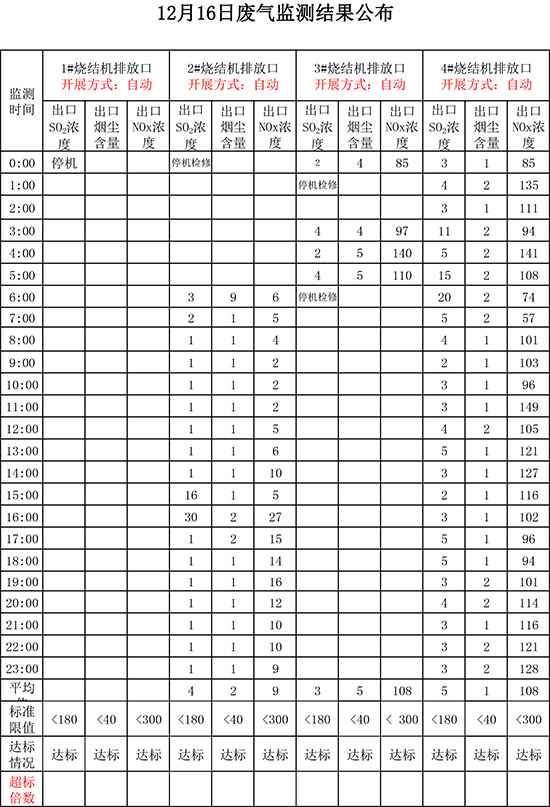 12月16日晉鋼集團廢氣監(jiān)測結果公布