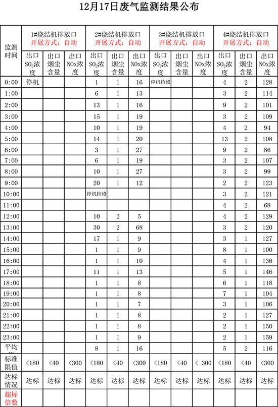 12月17日晉鋼集團(tuán)廢氣監(jiān)測結(jié)果公布