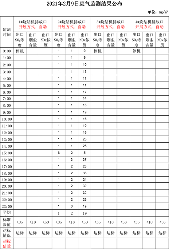 2月9日晉鋼集團(tuán)廢氣監(jiān)測結(jié)果公布