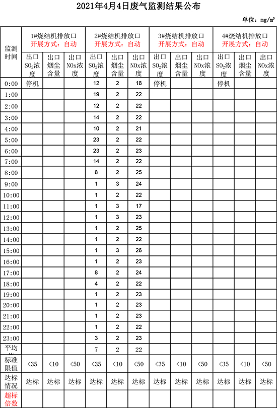 4月4日晉鋼集團(tuán)廢氣監(jiān)測(cè)結(jié)果公布