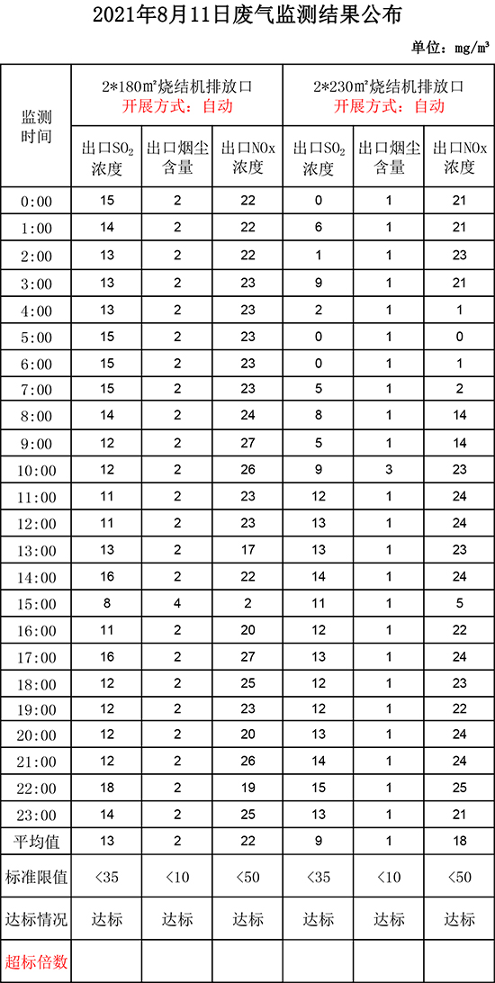 8月11日晉鋼集團(tuán)廢氣監(jiān)測結(jié)果公布