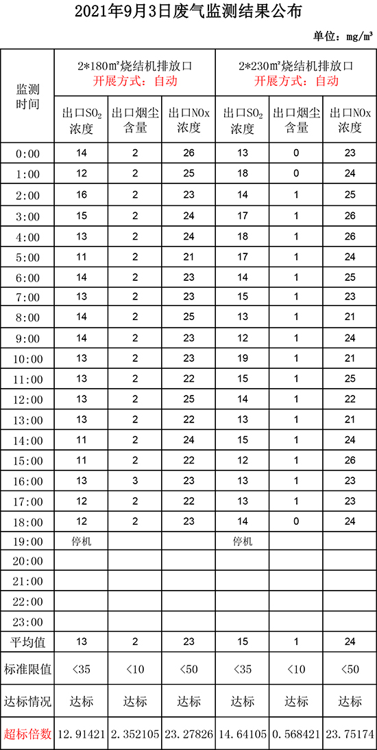 9月3日晉鋼集團廢氣監(jiān)測結(jié)果公布