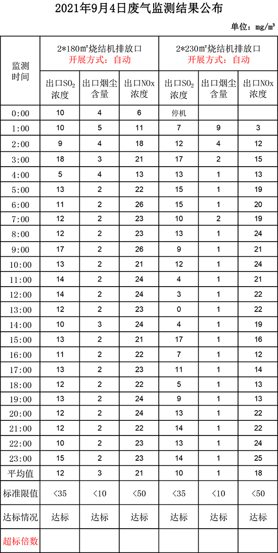 9月4日晉鋼集團廢氣監(jiān)測結果公布