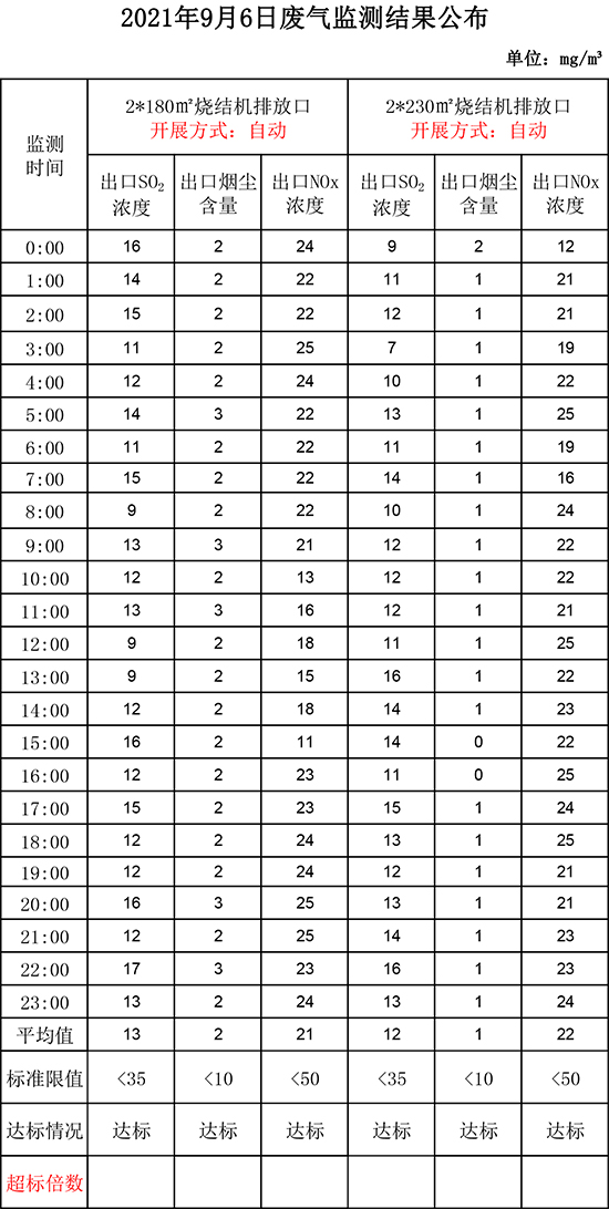 9月6日晉鋼集團(tuán)廢氣監(jiān)測(cè)結(jié)果公布