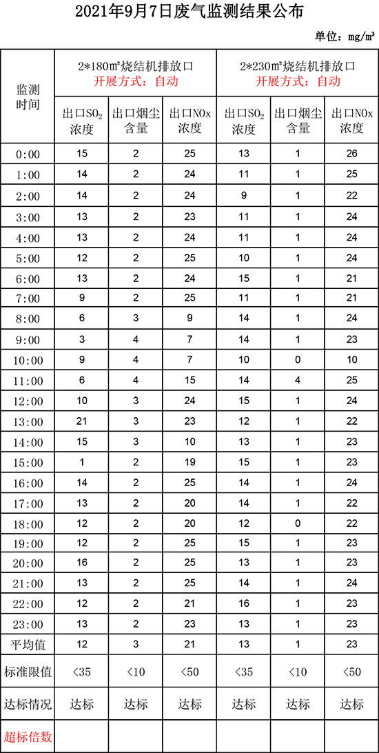 9月7日晉鋼集團廢氣監(jiān)測結果公布