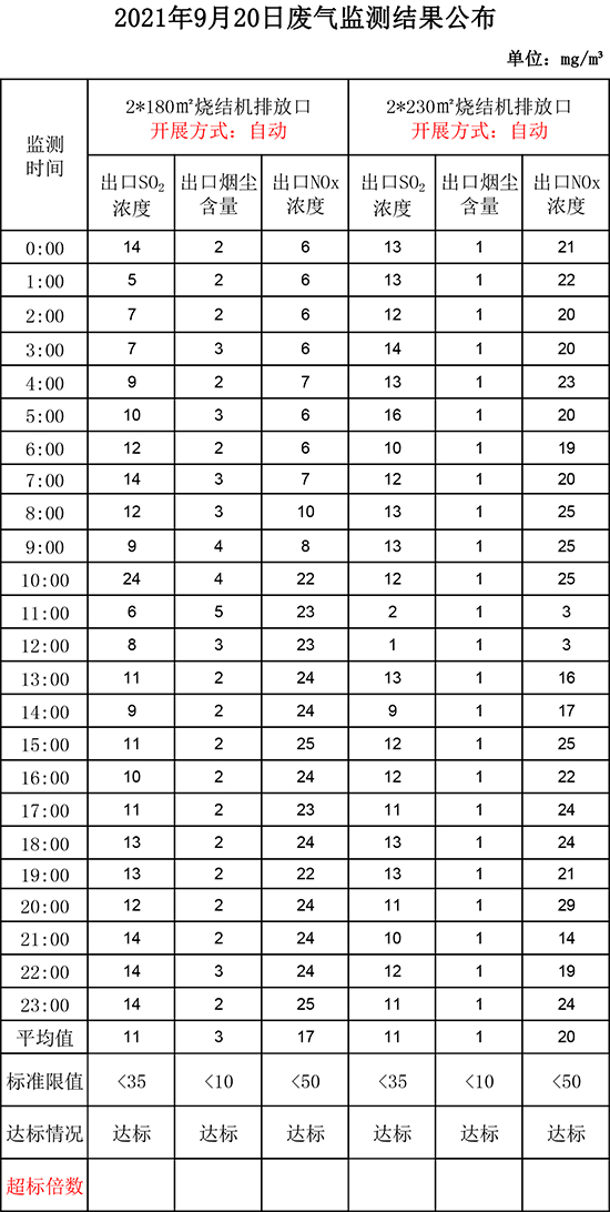 9月20日晉鋼集團廢氣監(jiān)測結果公布