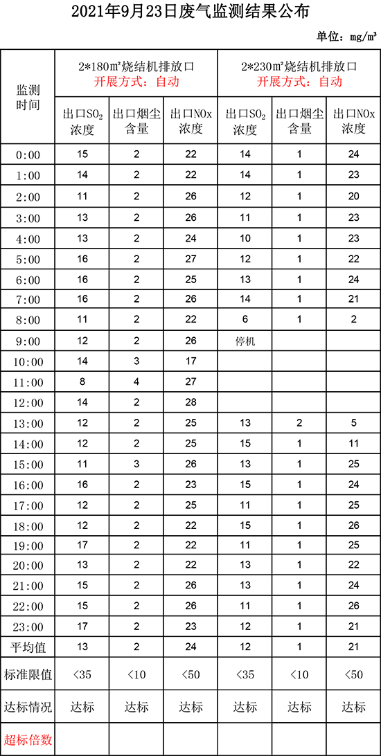 9月23日晉鋼集團廢氣監(jiān)測結(jié)果公布