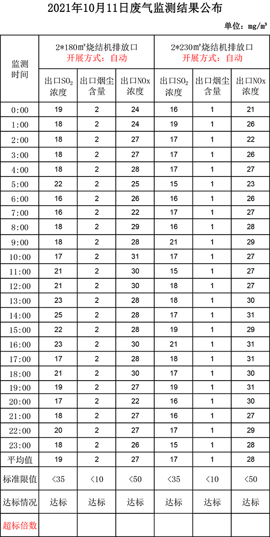 10月11日晉鋼集團(tuán)廢氣監(jiān)測結(jié)果公布