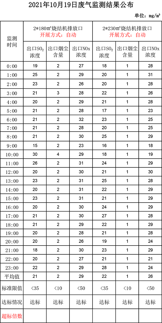 10月19日晉鋼集團廢氣監(jiān)測結(jié)果公布