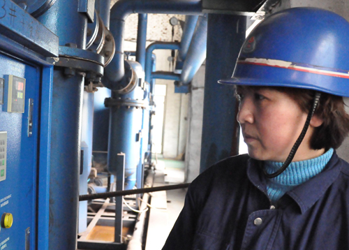軋鋼廠高線車間空壓站鄭菊愛在查看干燥機運行情況